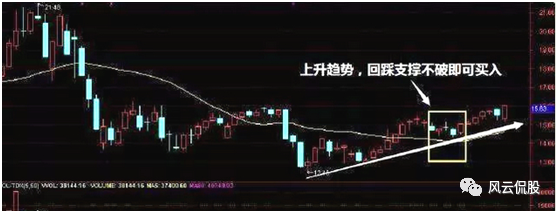 我们首先把大盘15分钟的K线图调出来,如果下午2点半过后,15分钟K线图是处于上升趋势的话,我们就有机会在尾盘买进股票。另外一种情况就是大盘如果全天都是下跌趋势的话,而15分钟K线图我们就要关注2点之后的情况,如果15分钟K线图能出现一根探底针,那么我们就可以去找类似此形态的个股进行买入操作。【注意:如果大盘是放量大跌,大家就不要进场选股操作,个股基本第二天都是低开】
