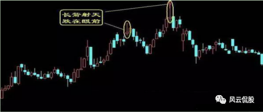 长箭射天的意思就是股票在高位上出现一根长上影线的小实体K线,这种K线如果出现在股票的高位就是卖出的信号了,判断股票是否在高位一般是这只股票涨幅已经达到20%,再结合一下成交量,如果是放出大量的,那么长箭射天的要成立了。