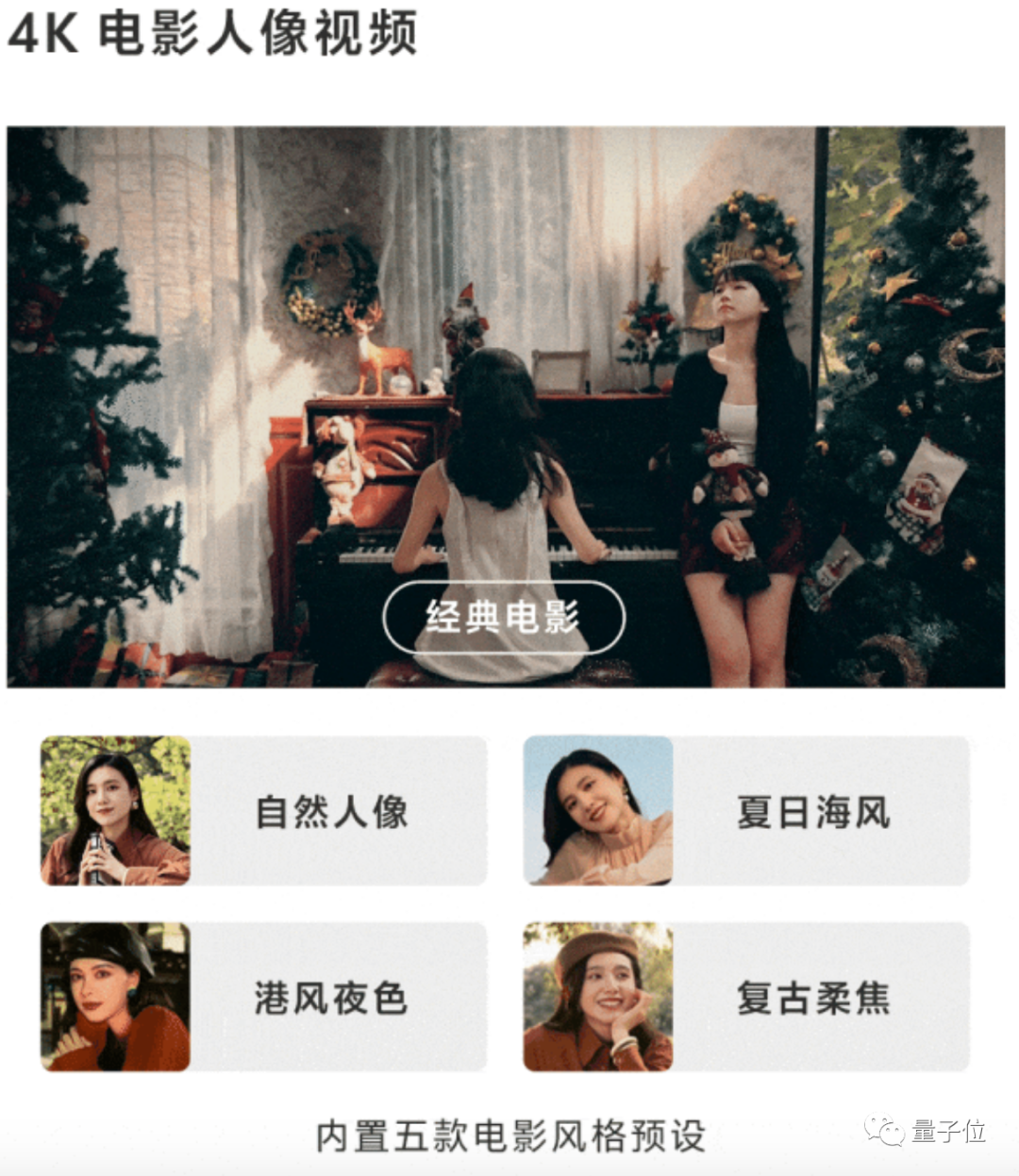 在手机上带来4K电影级别人像视频拍摄。能自动切换焦点,带来电影级肤质优化和色彩处理。而且还实现了4K级拍后编辑,快速且无损。