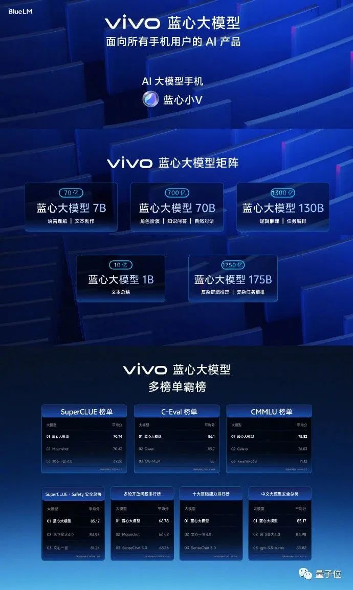 蓝心大模型也在多个大语言模型榜单中霸榜。
