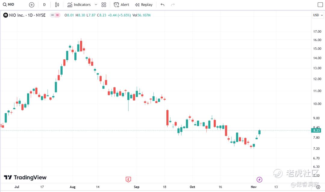 反倒在11月1日蔚来裁员消息流出后,市场反映积极。在蔚来确认裁员规模后当天股票大涨5.65%,月初至今累计涨幅超10%。