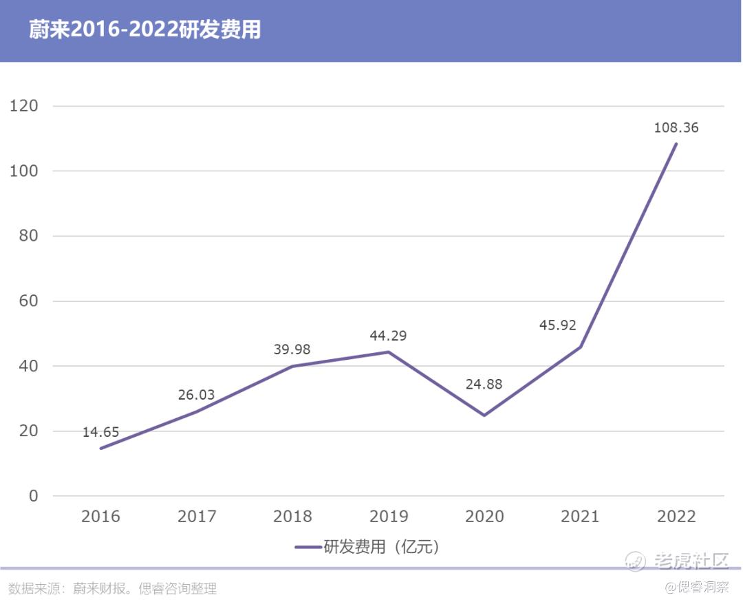 可以看到,蔚来研发费用从2021年的人民币45.919亿元增加到2022年的人民币108.363亿元(合15.711亿美元),增幅为136.0%。而这60多亿元的增幅,大部分都给了研发人员——蔚来2022年财报显示,主要原因是研发职能的人员成本增加了人民币40.268亿元,以及新产品和新技术的设计和开发成本增加了人民币17.041亿元。