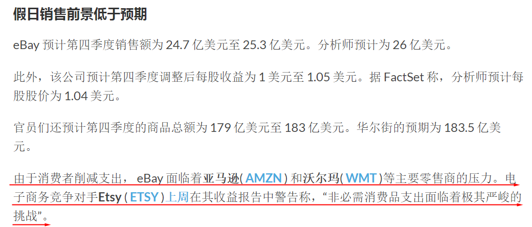 按理来说,第四季度是年末假日购物季,有黑五、网一、圣诞节等一系列消费盛宴,平台的营收应当迎来几**涨才是,eBay为何会如此悲观?其实,这是因为当前欧美经济较为疲软,消费者纷纷缩减购物支出,将大大减少对非生活必需品的购买,同时eBay也正在面对来自亚马逊和沃尔玛等零售业巨头的压力,并未能在竞争中占据明显优势。