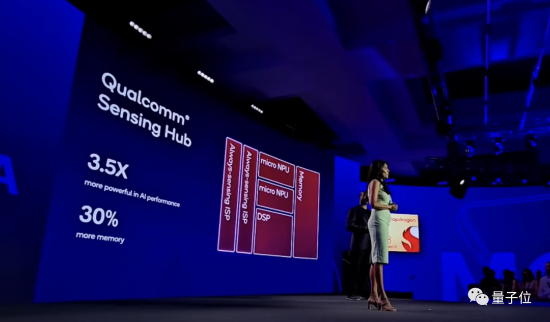 Hexagon NPU之外,第三代骁龙8在Sensing Hub(传感器中枢)上也下了功夫:增加下一代微型NPU,AI性能提高3.5倍,内存增加30%。