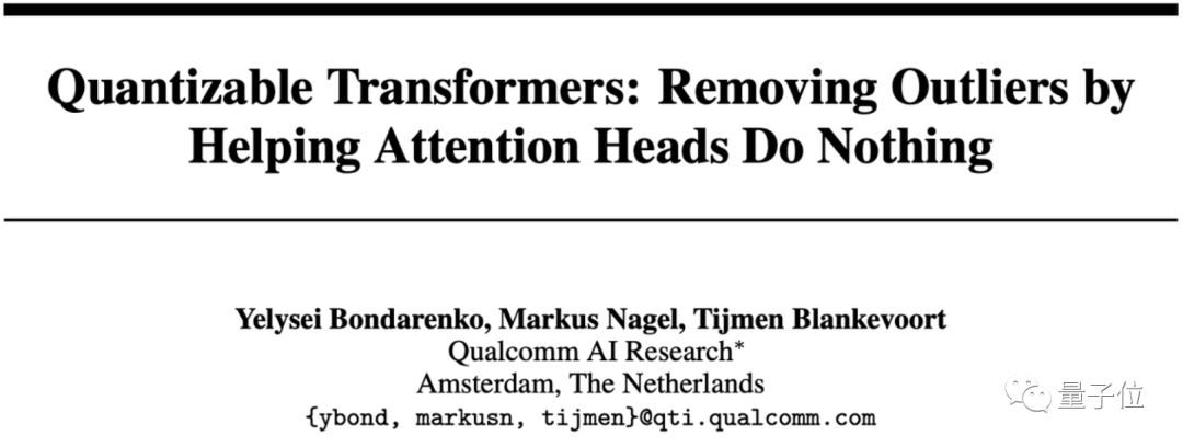 像是这篇被NeurIPS 2023收录的论文,就针对当前大模型的“基石”Transformer架构进行了量化相关的研究。