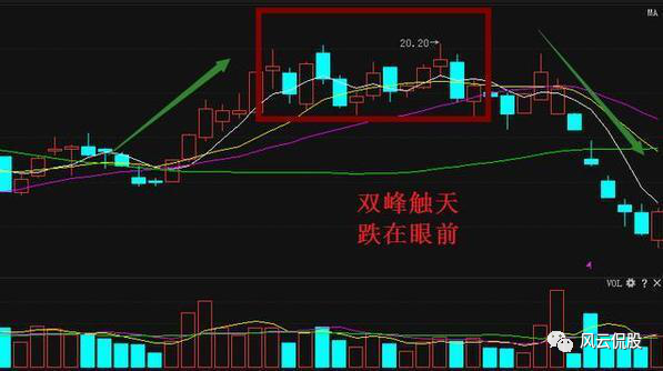 五、双峰触天,跌在眼前操作要点:股价上升到股价后形成第二高度大致相等的顶部,它没有颈线,也没有度量跌幅,该顾形态形态形成后股价多有一跌。