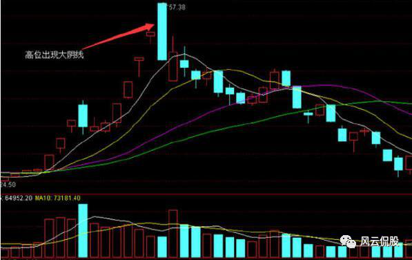 三、股票高位出现大阴线卖出在高位遭到抛盘,收了根大阴线,虽然成交量不算大,但是当天的换手率达15%以上。这时投资者要果断卖出。第二天股价也大幅低开,后市也是一路下跌。