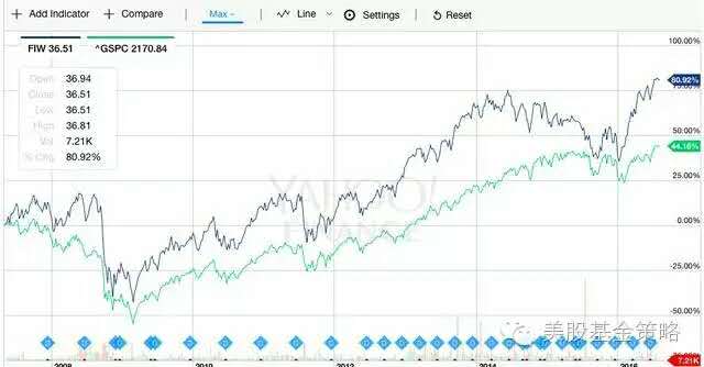可以看到,自从发行以来,FIW的累积收益长期是在标普500之上的,而随着今年的一番冲刺,更是将标普500甩开。