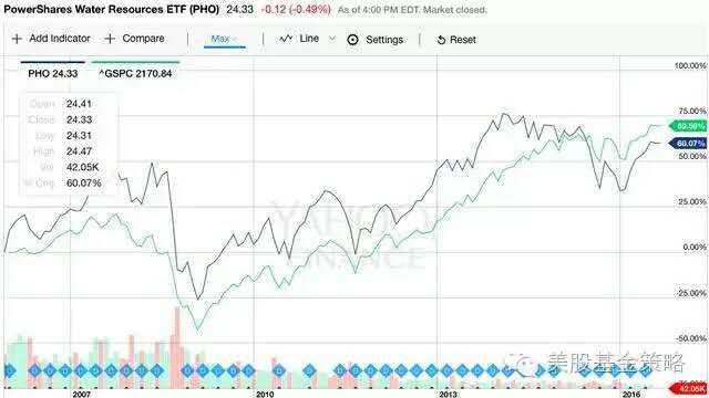 其实因为中间撞上金融危机,同期标普500的走势也好不到哪里去,PHO主要在2014年到2015年这段时间,表现尤其疲软,