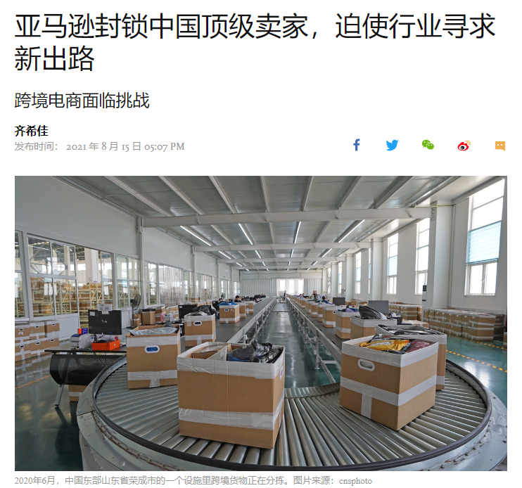 亚马逊封禁中国卖家账户 图源:Global Times