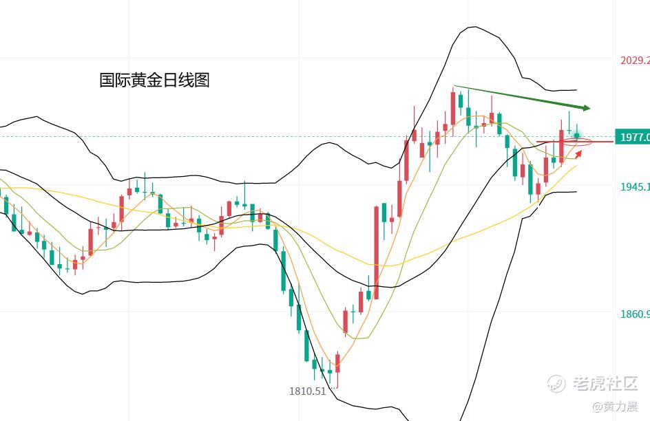 从之后的走势看,黄金继续上行,最高涨至1993美元,遇阻后回踩1978美元企稳。本周一黄金低开低走,跌至1973美元后企稳,反弹至1985美元遇阻,目前暂时交投于1977美元。黄金上涨遇阻,走势冲高回落,短线略微偏弱。