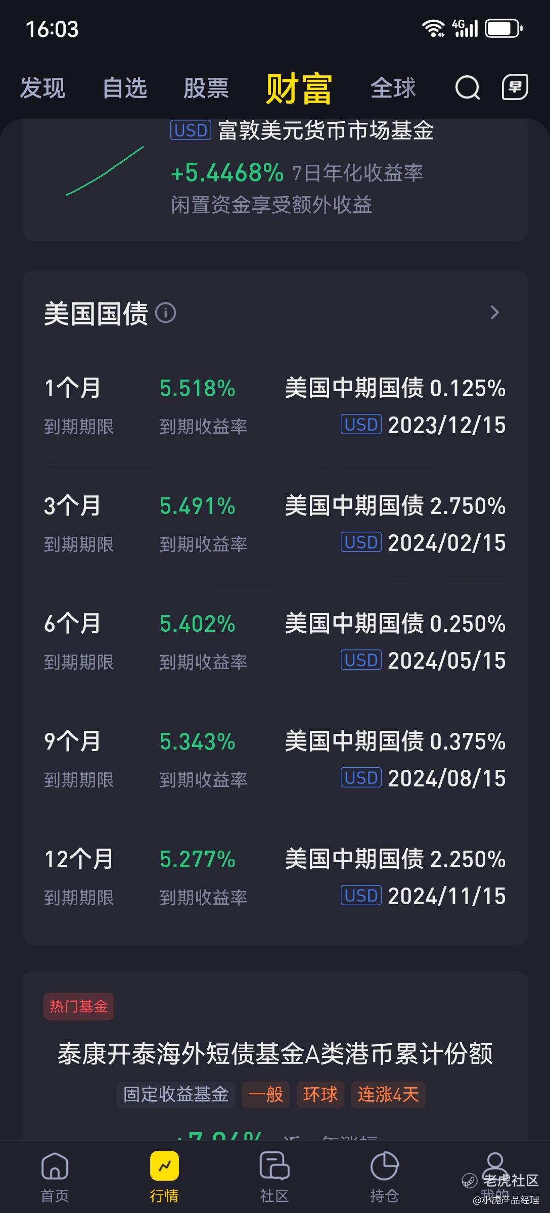 页面路径:行情-财富Tab-美国国债功能,或直接搜索相关国债品种
