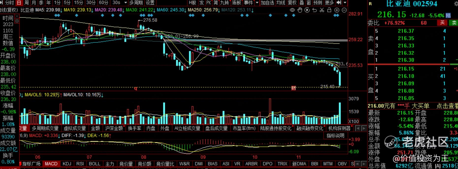 今日,比亚迪突然暴跌,A股股价创一年半以来新低!