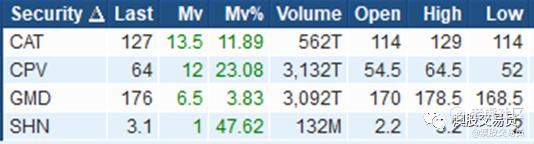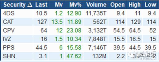 涨幅大于10%,成交金额>50万澳元个股: