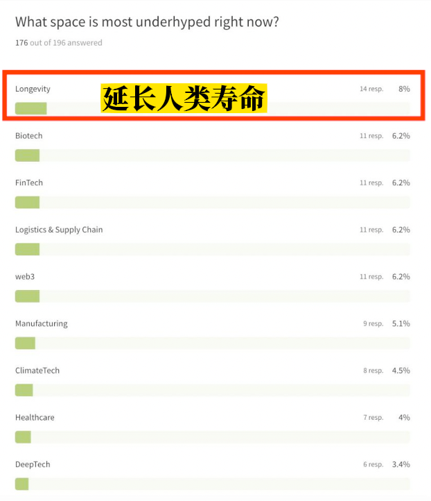 在近期发布的2023Q1新兴VC基金管理人调查报告中,91/185位基金管理人将AI & ML(机器学习)列为当前泡沫最大的投资方向。那么,与之相对,最被忽略的投资方向是什么?出人意料的是,延长人类寿命的课题被选为第一。这背后,是越来越难以忽视的人口老龄化问题。