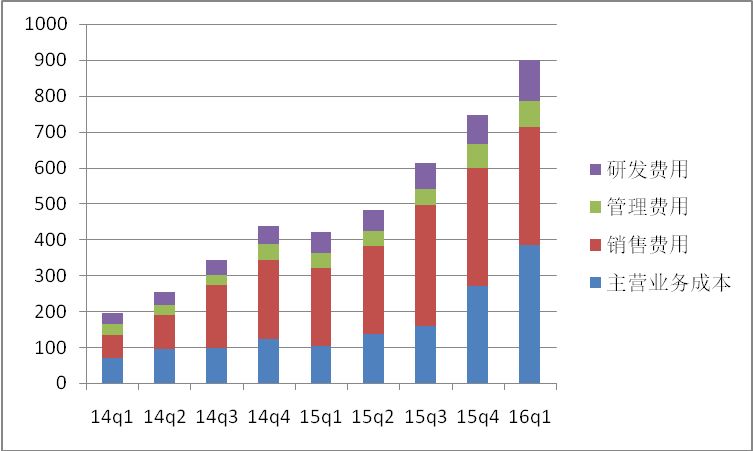 而由于在汽车商城上的投入,使得主营业务成本在近期也很快速的增长。