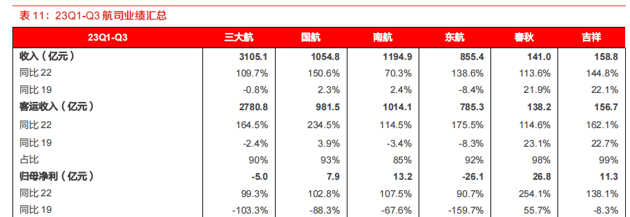 具体而言,先从最新的三季度业绩出发,目前,三大航业绩都回暖,其中南航最为亮眼,超越国航成为利润第一。而春秋航空的业绩也是新高,已经逐渐看到追上东航的可能。