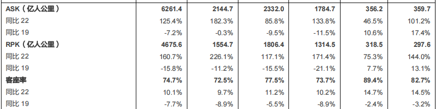 不过这也合情合理,四年的通胀,还有含油价加成,确实应该带动票价的升高。但另一方面,关键的数据客座率仍低于2019年水平,这说明了当下的航空运输需求仍未完全恢复,如国内的出行需求可能被较高票价压抑,客座率还可以优化,达到更高的营收水平。