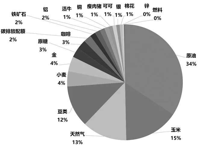 2021年,境外商品期权成交量排名前10的品种依次为原油、玉米、天然气、大豆、小麦、黄金、原糖、咖啡、碳排放配额以及豆油。其中碳排放配额期权同比增加75%,黄金期权同比减少36%。