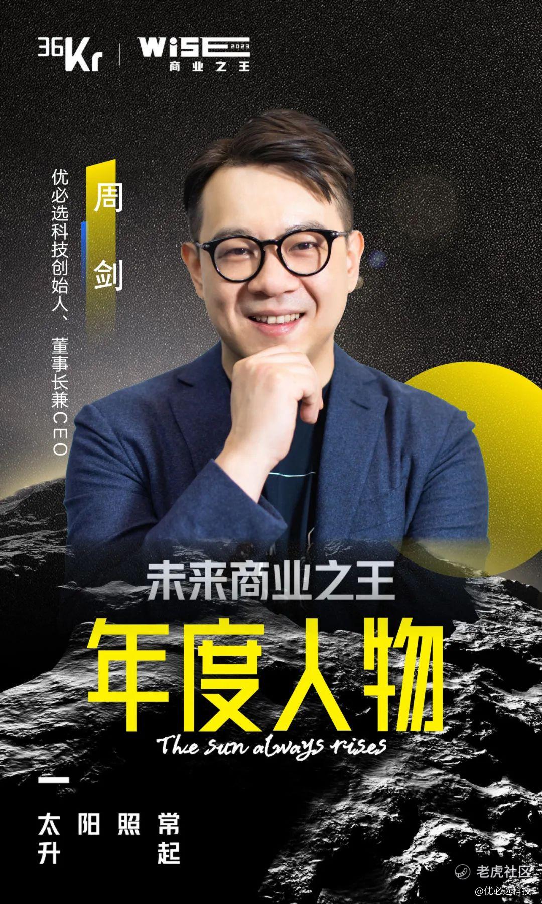 图为优必选创始人、董事长兼CEO周剑入选“WISE2023未来商业之王年度人物”
