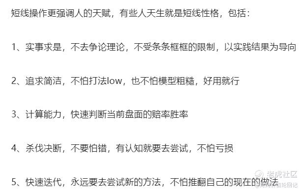 近期从思想钢印的《为什么中线投资比短线和长线都难?》一文中,看到了适合短线的几条天赋: