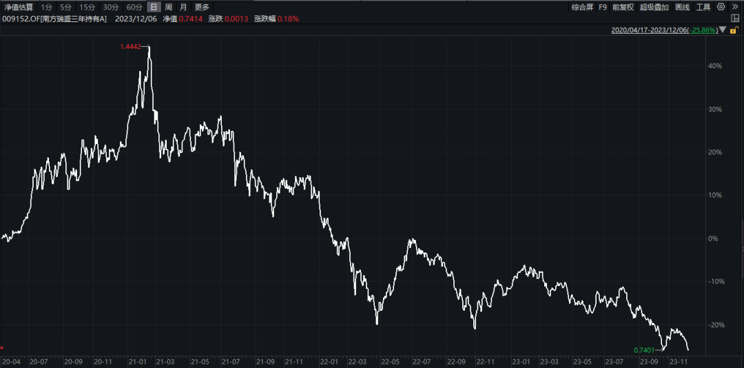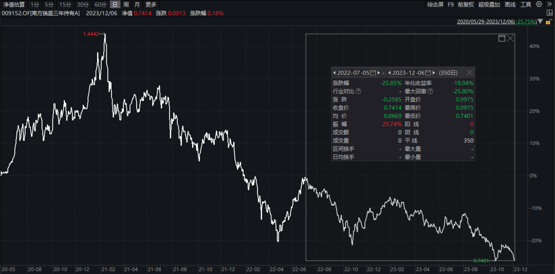 跌幅榜第一的是南方瑞盛,近三年跌去38%,最高时规模近20亿,现在只剩8亿元。