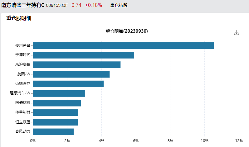 而2022Q3至今,该基金净值再跌去25%。在这段时间里,该基金经理不再大调仓,可能是被前两次大调仓挨打搞怕了。截止23Q3,该基金的持仓为茅台、宁德时代、京沪高铁、美团、迈瑞医疗、理想汽车等。