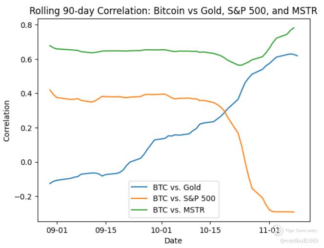 $MicroStrategy Incorporated(MSTR)$ 与比特币具有非常好的相关性,我们可以看到它接近 0.8,并且仍然显示出走高的迹象。