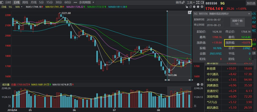 自8月7日以来,板块指数已经反弹了8.61%,尤其是中兴通讯今天又大涨8.42%,同期累计涨幅已经达到31.67%。
