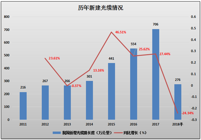 一般来讲,光纤光缆要提前于基站投入先行建设,根据工信部的相关数据来看,15-17年期间,我国每年光缆新增长度保持高速增长,同比增速25%以上,但2018年上半年却大幅下滑,是不是前几年的光缆铺设已经在为5G准备了?这个还需要我们对下半年光缆铺设情况进行跟踪。不过从目前相关上市公司的业绩情况来看,依旧是保持较高增长的。