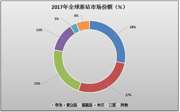 目前全球基站市场的市场格局已经比较明朗,全球仅剩华为、爱立信、诺基亚、中兴4个主流玩家,同时有较高的技术和资金壁垒,很少有公司有实力介入。