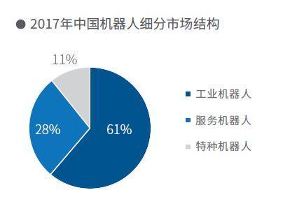 2017年我国工业、服务和特种机器人市场规模分别约为266亿、122亿和47亿人民币;从细分市场规模来看,受国内经济发展与制造业转型的影响,市场对工业机器人的需求仍将继续放量,预计在2020年前,工业机器人将继续占据中国机器人市场最大份额;从增长趋势来看,服务机器人市场规模增速将高于工业、特种机器人。