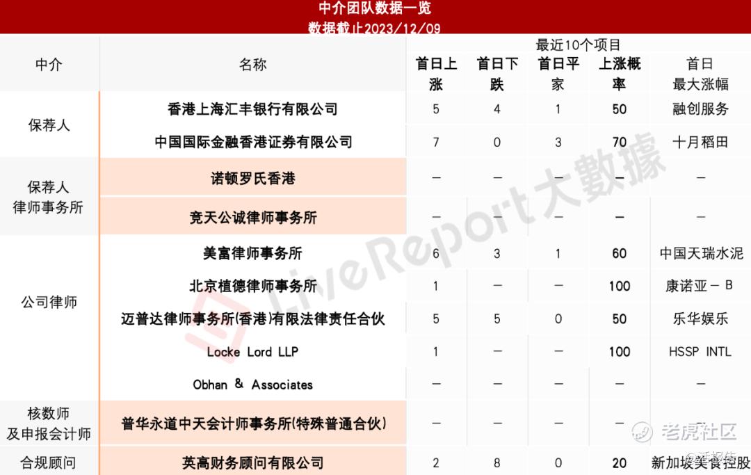 据LiveReport大数据统计,幂源科技中介团队共计11家,其中保荐人2家,保荐项目数据表现较好;公司律师共计5家,综合项目数据一般。整体而言中介团队历史数据表现一般。