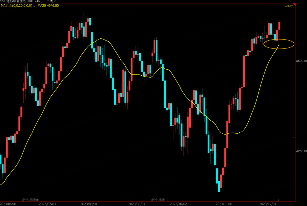 上周评论区有朋友@我,问为何最近不说说美股指的情况。坦白说,没啥好讲,对于美股来说只要经济数据不出大问题,美股指就难有大跌,最高风险的8-10月都过去了,剩下的时间跟随行情即可。而技术上,美股指依旧沿着20日均线不断上移,所以短期内咱们可以以这条均线作为多头跟踪止盈的重要指标,跌破了咱们再讨论是否调整的问题。