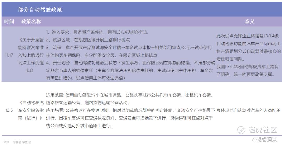 虽说车企们食言的可能性很大,但今年的小规模落地,也一定程度上刺激了政策的落地:从11月17日明确规范L3/L4级自动驾驶汽车的准入,到12月5日,具体规范自动驾驶汽车的人员配备等要求,国家相关部门连出两大红头文件,在政策方面予以自动驾驶商业化运营强力的支持和保障。
