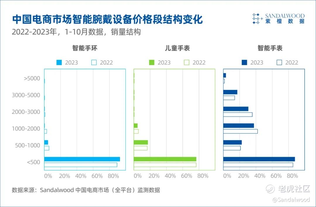 Sandalwood对电商市场智能腕戴设备的监测数据显示,2023年智能腕戴设备市场的价格趋势表现出鲜明的分层特点。