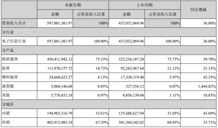 主营产品,特别是纸质载带产品增速39.78%,公司持续优化纸质载带系列产品的结构,增加了后端高附加值产品如打孔纸带、压孔纸带的产销量,实现满产满销,后期扩产计划也在稳步实施中。