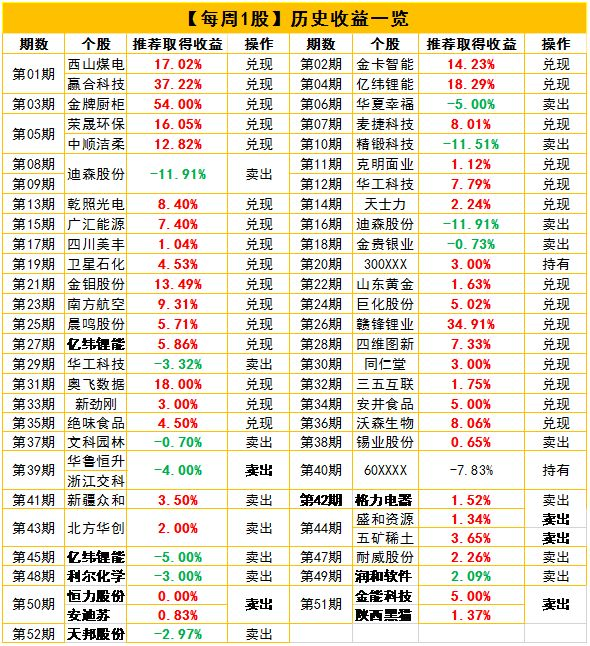 自2017年08月《每周一股》上线以来,我们分享的个股平均收益约9.5%,上涨成功率约81%。具体个股收益表如下图: