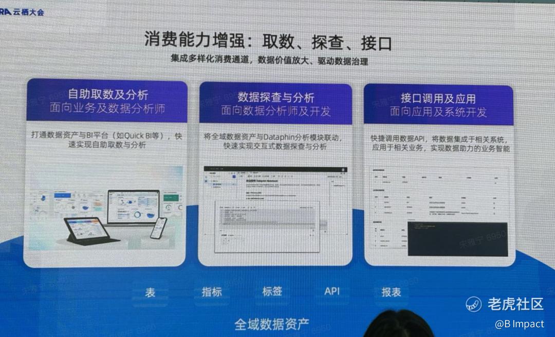 图为:阿里巴巴的瓴羊,在云栖大会上对于数据消费的分享
