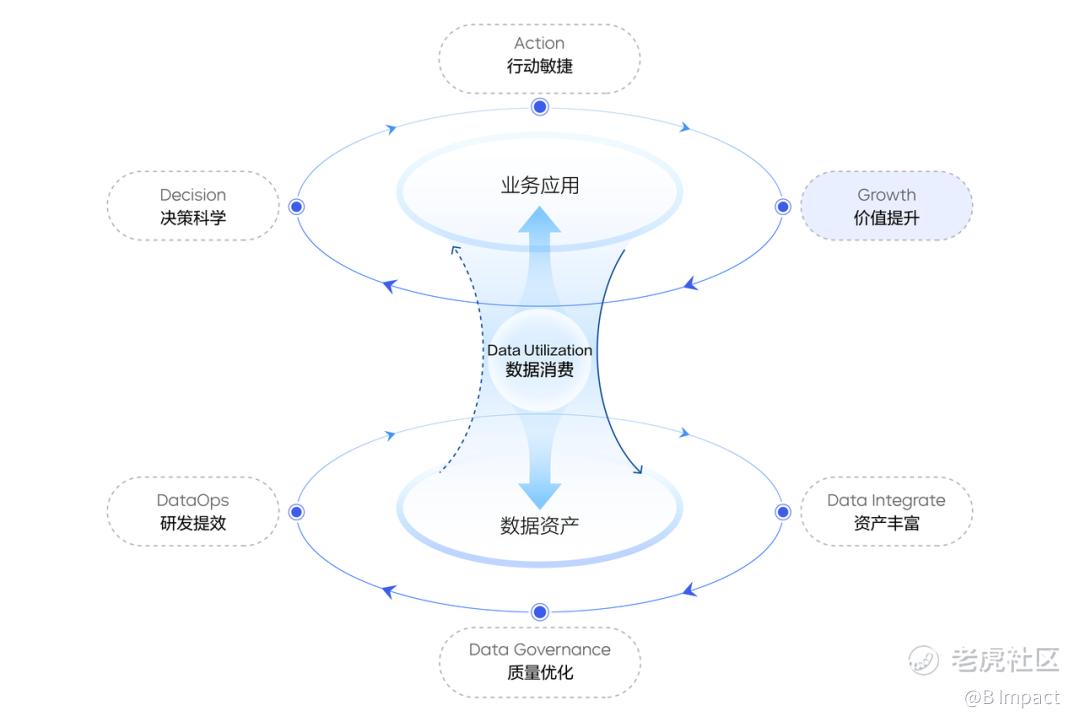 查阅了一些资料,我看到比较早期关于数据消费为核心的论述是来自火山引擎,它们将“数据消费”做为核心,构建了“数据飞轮”的数字化建设模式。