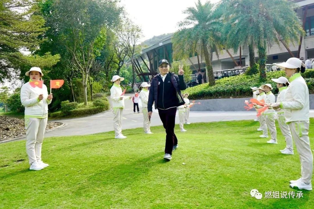 等待开球前,大家兴致高昂,纷纷挥杆热身