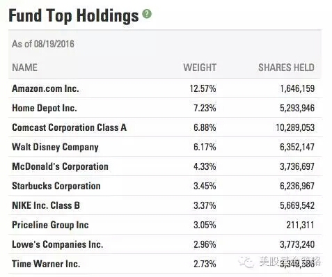 我们看到,第一位,而且仓位占比高达12%以上的是亚马逊,从这里也可以看出,这个可选和必选的边界其实也比较模糊。