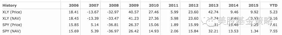 但是整体看,XLY依然是值得信赖的品种,让我们从年化收益的角度将其与挂钩标普500的ETF祖宗SPY比较下: