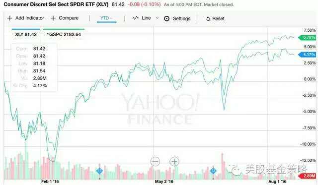 不过,今年以来XLY稍微疲软了下,跑输了标普500。