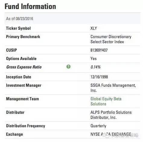 那就是发行了SPY的道富银行旗下产品:Consumer Discretionary Select Sector SPDR Fund,$(XLY)$。