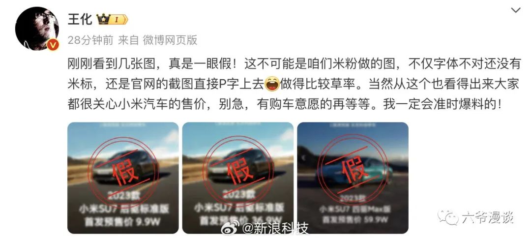 不过5点多的时候,小米集团公关部总经理@王化 就出来回应"一眼假"。