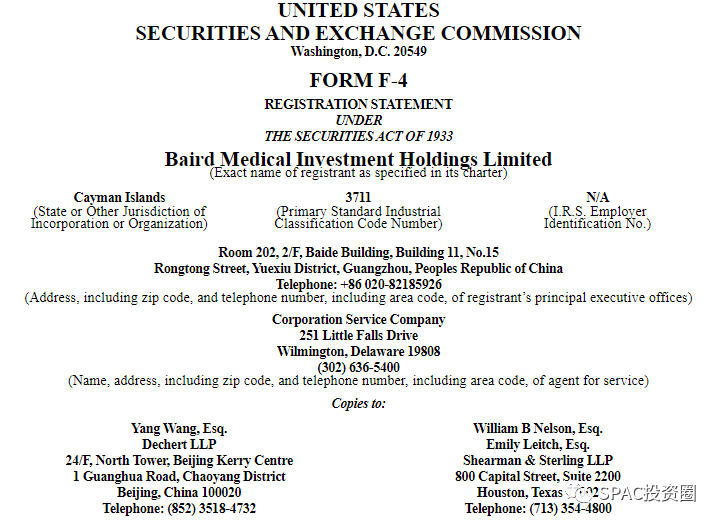 百德医疗,其于2023年6月26日宣布拟借壳SPAC(特殊目的收购公司)ExcelFin Acquisition(XFIN)在美国纳斯达克挂牌上市,并于8月21日在美国提交表格F4,股票代码为BDMD。