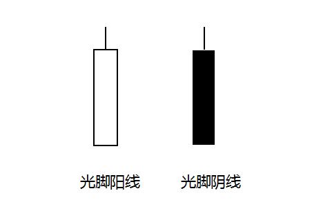 3. 光头光脚的阳线和阴线。这种K线既没有上影线也没有下影线,当开盘价和收盘价分别与最高价和最低价相等时,就会出现这种K线。如下图