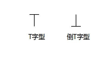 5. T字型和倒T字型。在十字星的基础上,如果再加上秃头和光脚的条件,就会出现这两种K线。它们没有实体,而且没有上影线或者没有下影线,形状像英文字母T。如下图