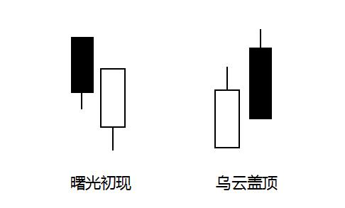 曙光初现的第一根K线为阴线,第二根K线为跳低开盘,但收盘价切入第一根K线的实体部分,它表明空方的打压遭遇多方的顽强抵抗,若在股价运行的底部出现,则是见底回升的强烈信号。乌云盖顶正好相反。